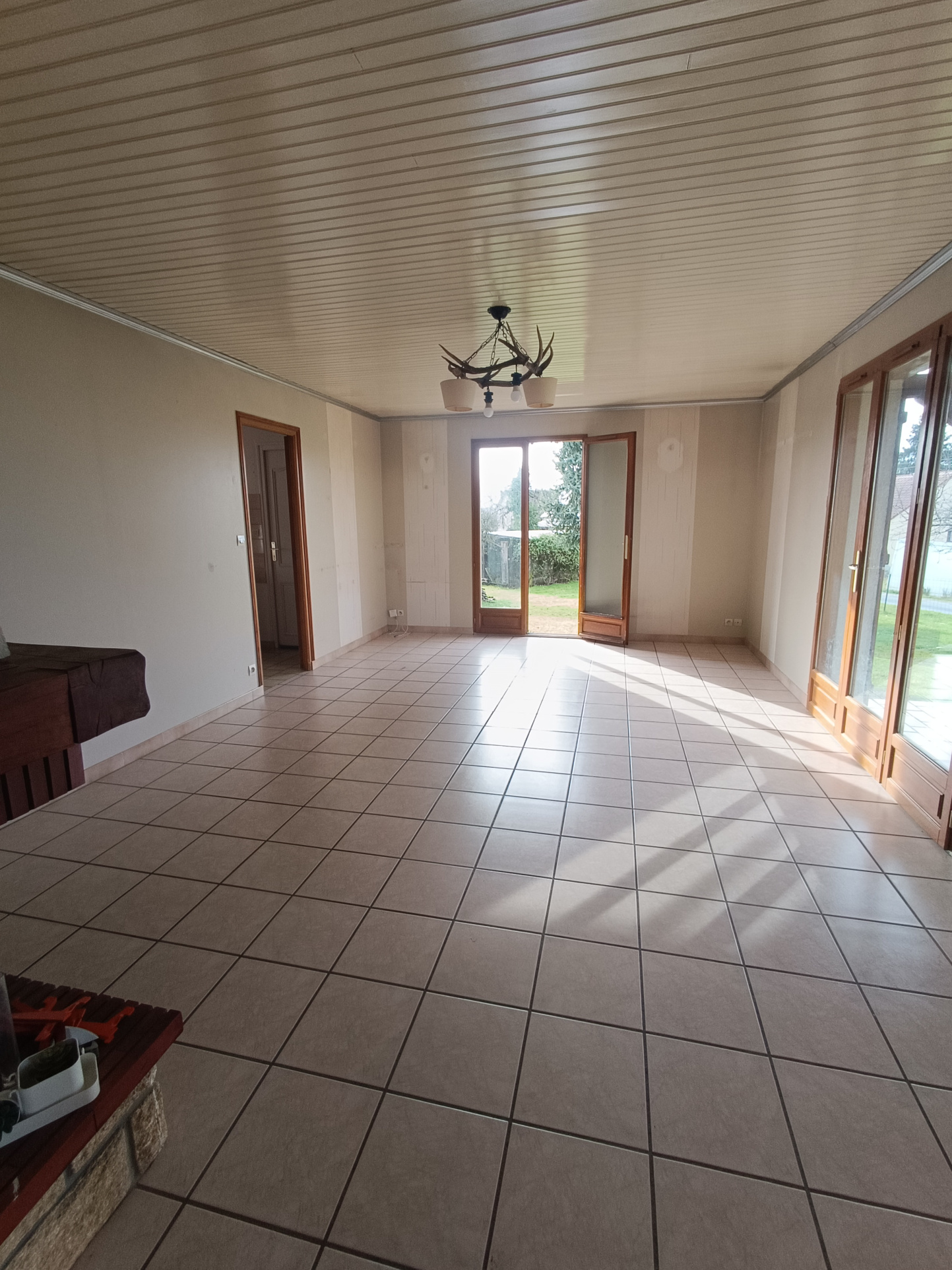 Coup de coeur pour cette maison à vendre élevée sur sous-sol de plein pied quartier La Loeuf, offrant une entrée ouvrant sur un couloir desservant deux chambres, une salle de bain, un WC indépendant, un salon séjour lumineux avec cheminée ainsi qu'une cuisine aménagée avec un escalier permettant l'accès au sous-sol. Toutes les pièces sont équipées de bouches de distribution d'air chaud provenant de la cheminée