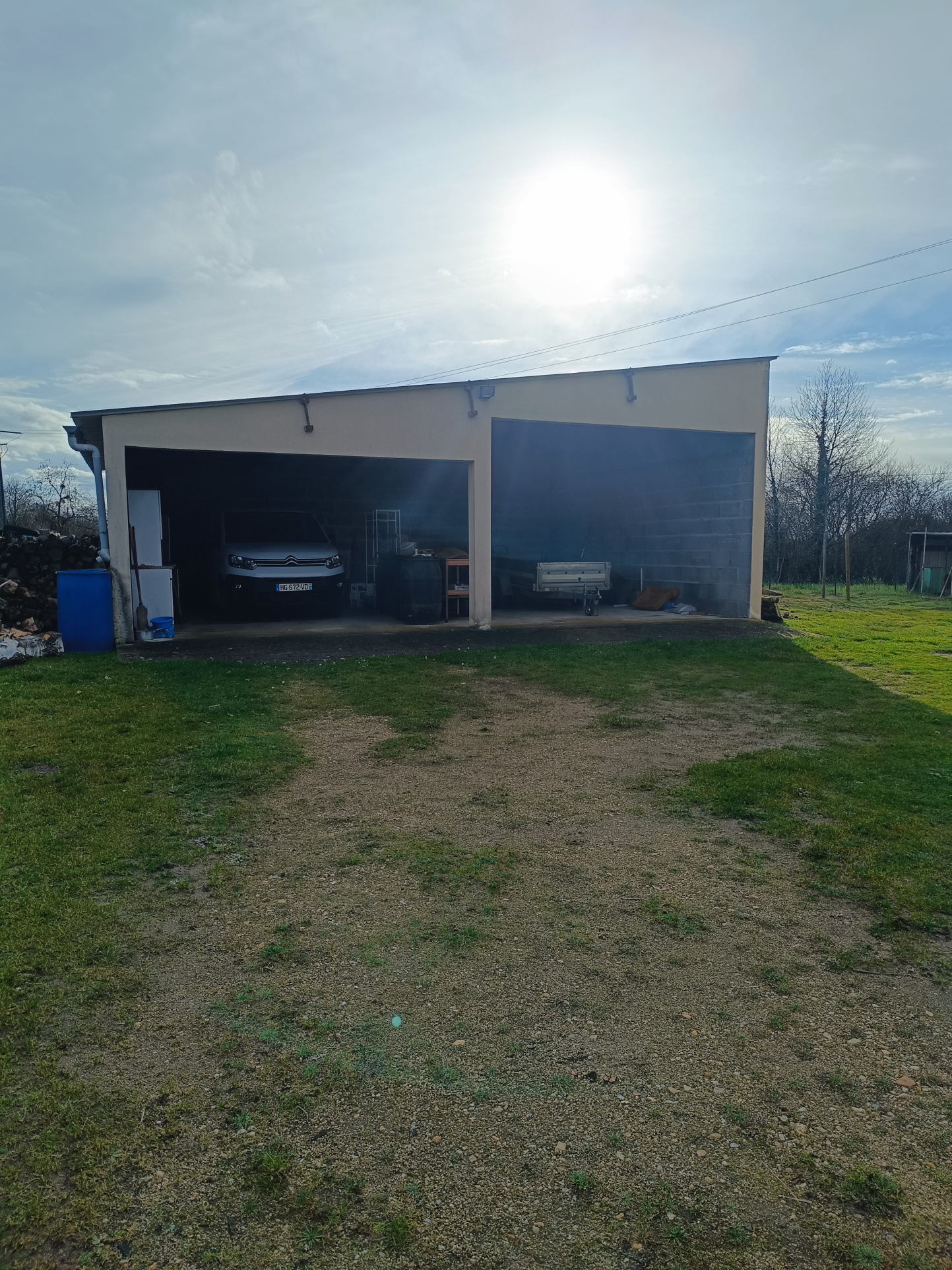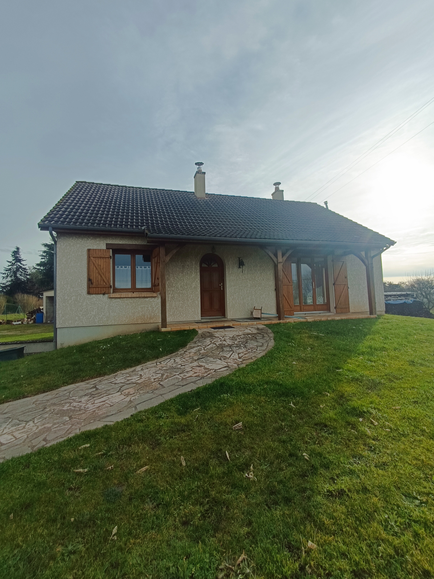 À l'extérieur, la maison bénéficie d'une façade soignée avec porche couvert, d'un chemin d'accès en pierre et d'un agréable terrain clos et arboré de 1 380 m2, un hangar ouvert pouvant accueillir deux véhicules, un chenil et un poulailler, idéal pour profiter des extérieurs en toute tranquillité.