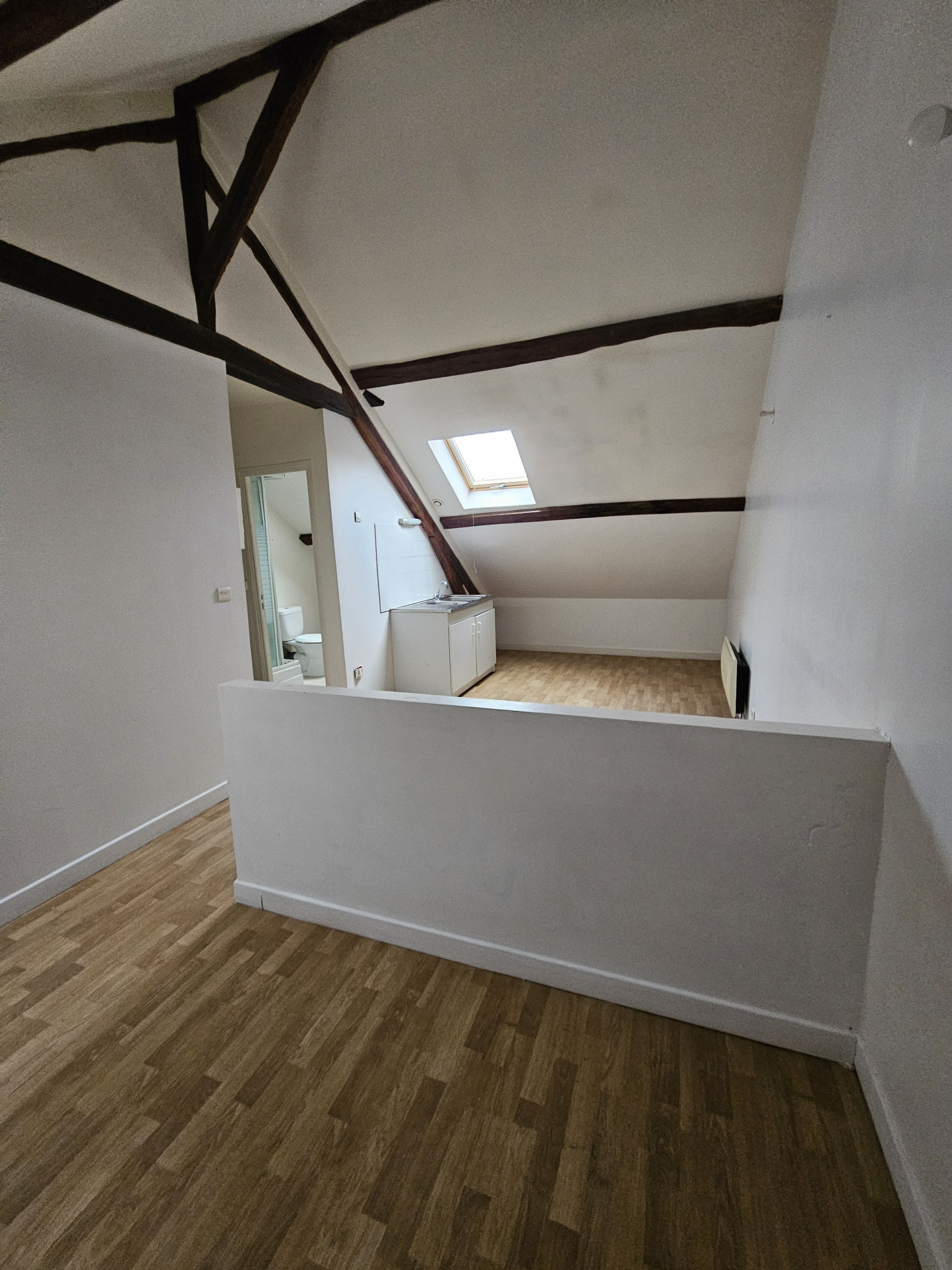 A louer studio situé au deuxième étage comprenant une pièce à vivre, un coin cuisine et une salle d'eau avec WC.