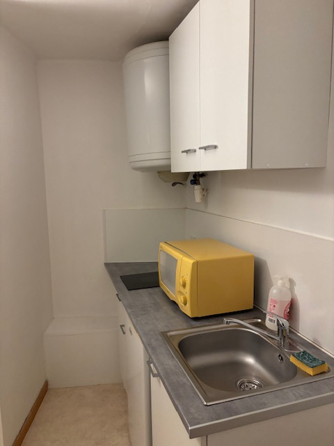 A loué studio meublé d'une surface de 16.45M2 proche de toutes commodités composé d'une pièce à vivre, un coin cuisine ( deux plaques, un frigo top et un micro-onde), une salle d'eau et un WC.